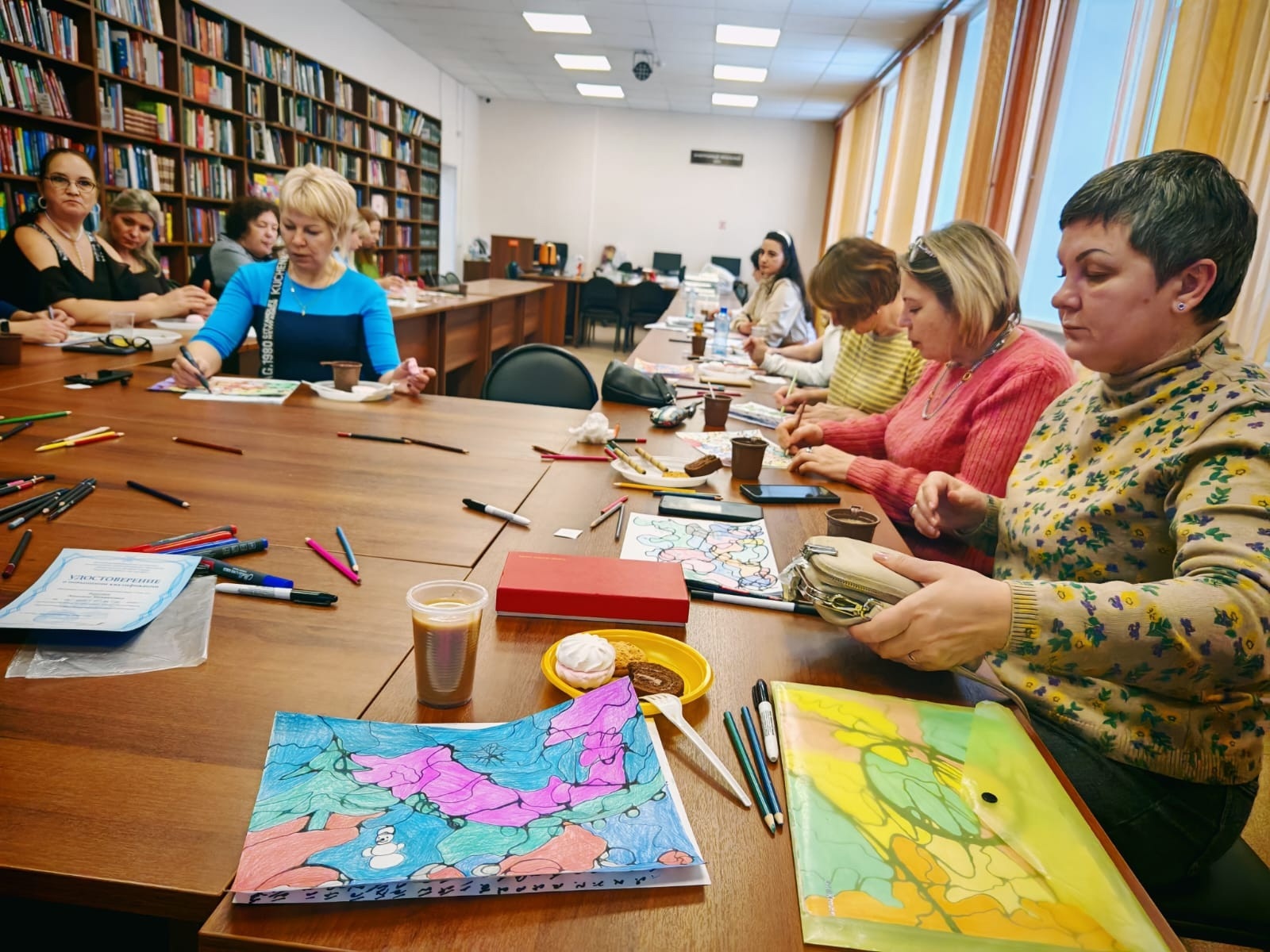 Недавно в нашей библиотеке состоялось первое, по-настоящему душевное мероприятие в рамках этого проекта. Для мам был организован уникальный мастер-класс «Добрый снег» под руководством Людмилы Боровик, специалиста по НейроГрафике. Это занятие стало прекрасной возможностью для участниц выразить свои чувства, снять напряжение, а также сформулировать самое заветное желание, наполнив его мощной энергией для скорейшего исполнения.