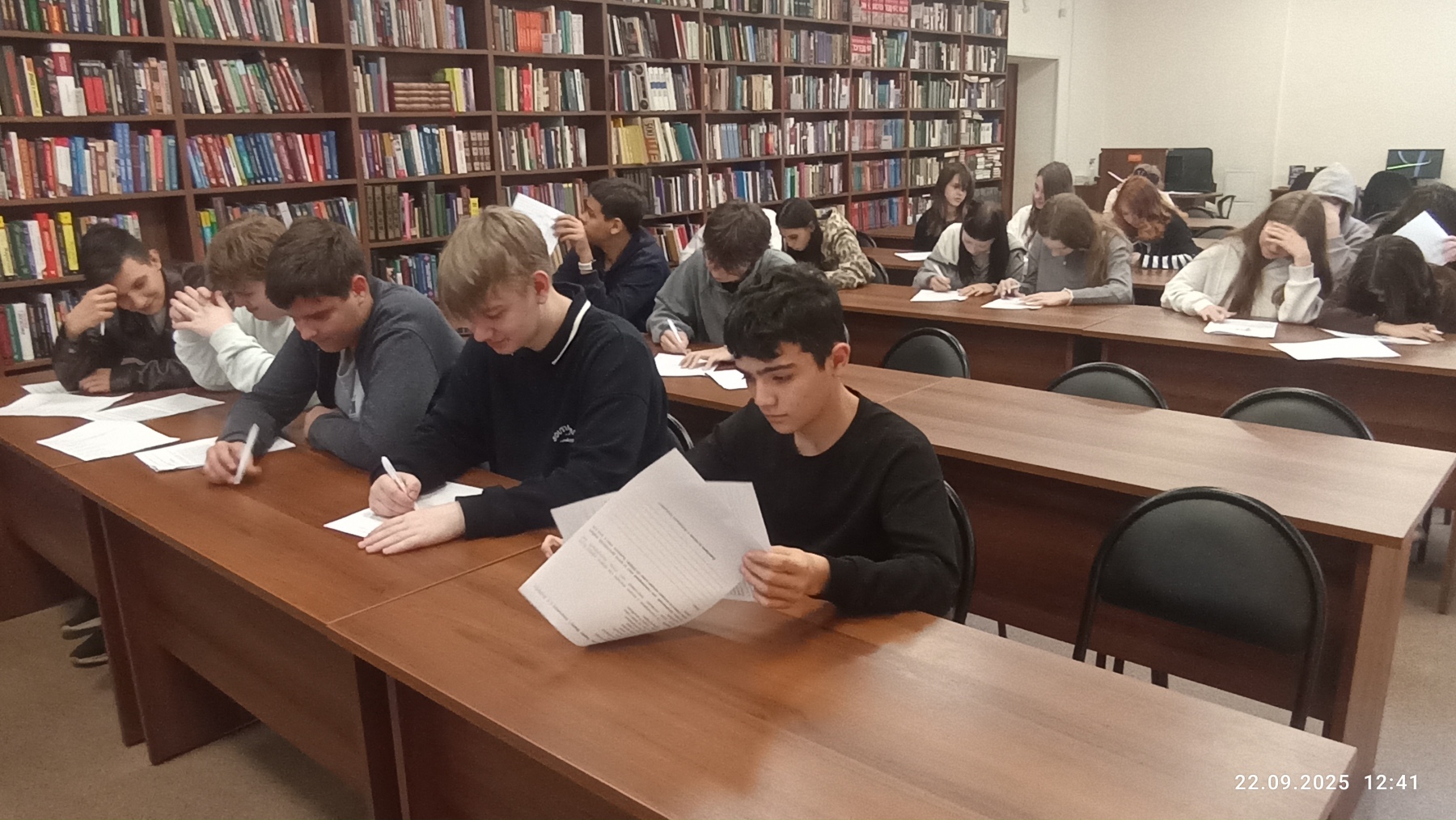 С приветственным словом к участникам обратились Наталья Николаевна Гришина, директор Рязанской библиотеки, и Галина Владимировна Карпачева, председатель регионального отделения Ассоциации. Диктант проходил в формате тестирования, что позволило привлечь участников разных возрастов — от четвероклассников до взрослых. На нашей площадке в акции приняли участие ученики 9 «В» класса школы № 76. Ребята с энтузиазмом принялись за выполнение заданий.